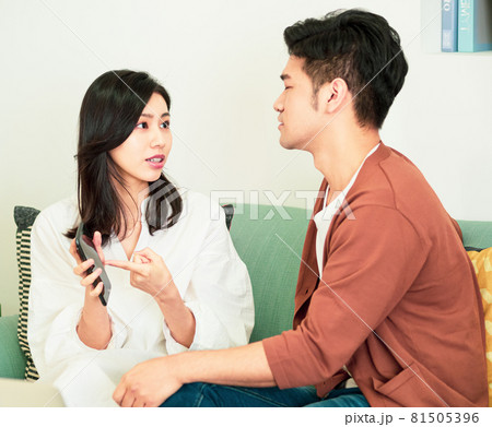 年輕夫婦或是情侶在家裡意見上有分歧。