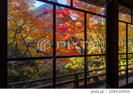 秋の京都 永観堂(禅林寺) 障子越しに見る紅葉