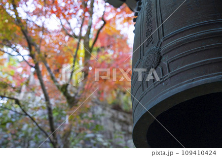 秋の京都 永観堂(禅林寺) 回廊にある梵鐘と紅葉
