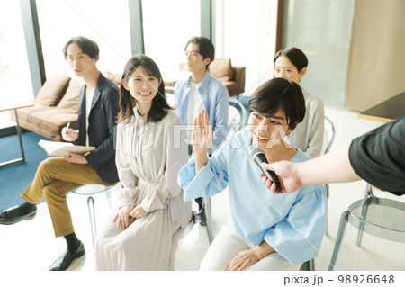 ビジネスセミナー スーツを着た若いビジネスマンとビジネスウーマン