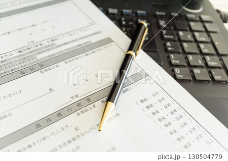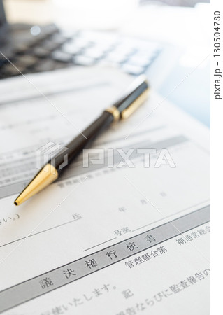 議決権行使書の写真画像素材 マンション管理組合 書面 用紙 ボールペン