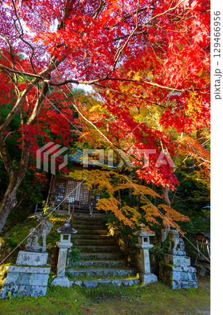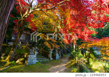 毘沙門堂、弁天堂へと続く石畳に紅葉の錦