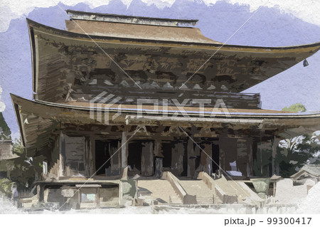 水彩画風 吉野 金峯山寺 本堂(蔵王堂) 奈良県吉野郡吉野町