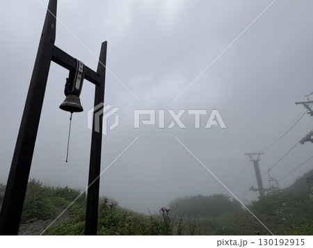 夏の谷川岳天神平_安全登山の鐘_谷川岳登山道_霧の中の谷川岳
