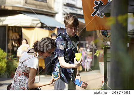 谷根千観光する外国人 煎餅屋