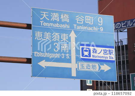 天満橋・谷町9・恵美須東・森ノ宮駅・玉造筋・道路看板/大阪府大阪市天王寺区悲田院町10