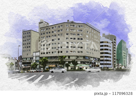 水彩画風 谷町9交差点 千日前通 谷町筋 大阪府大阪市