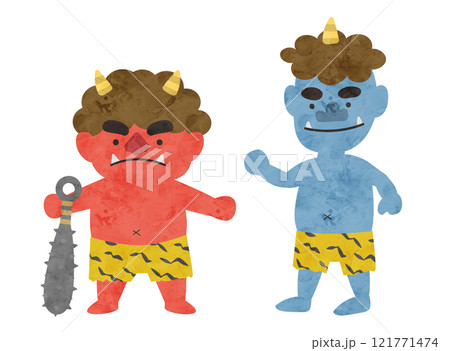 赤鬼と青鬼の水彩風ベクターイラスト