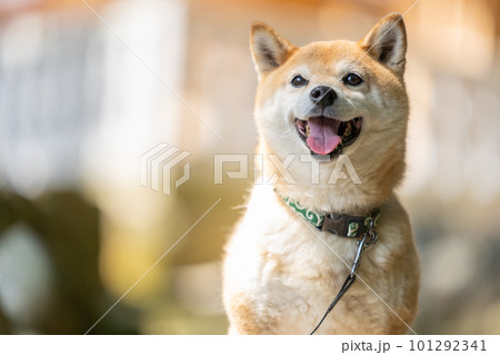 目を閉じて笑う柴犬のアップ 豆しば