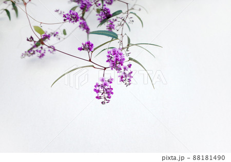 黒大豆の花 葉付き 白バック 植物【水彩】