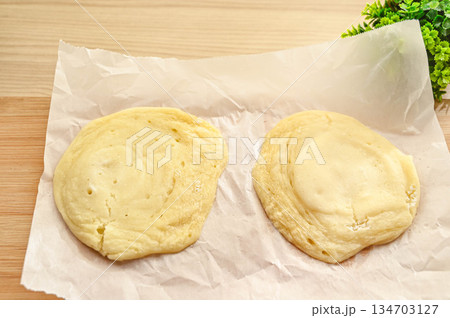 豆腐パンの生地をクッキングシートに乗せる