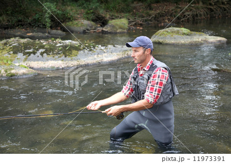 Fly fishing in river