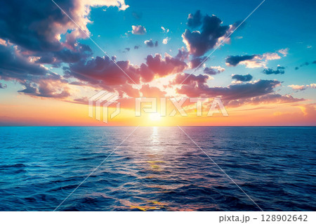 beautiful dramatic sunset over sea sunlight blue sky sea level landscape tranquil waters nature beauty revealed AI Generated
