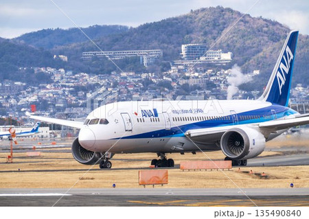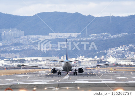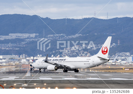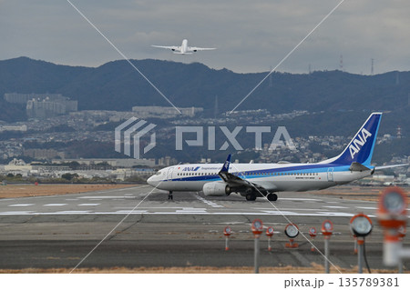 冬の大阪空港(伊丹空港) タキシング中の飛行機 大阪府豊中市