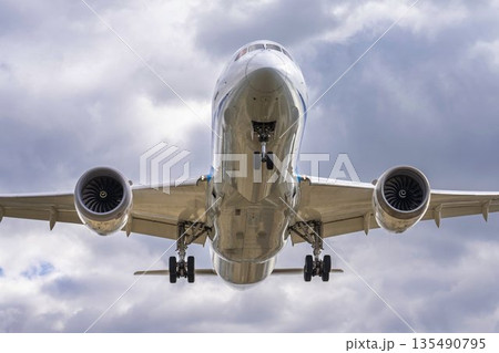 冬の大阪空港(伊丹空港) 着陸中の飛行機 大阪府豊中市