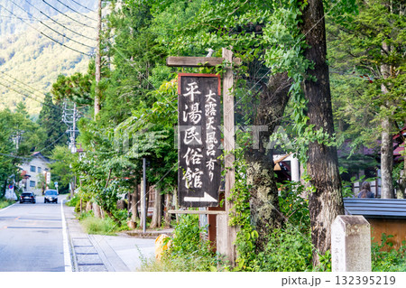 飛騨地方の平湯民俗館 入口の看板(平湯温泉郷にある博物館)