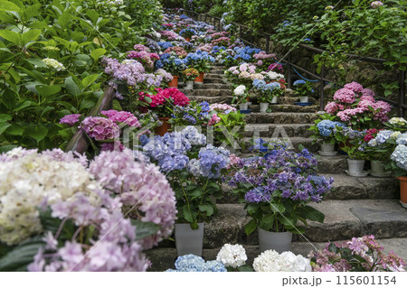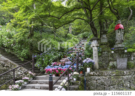 6月の長谷寺(奈良県)開山堂前に咲くアジサイ