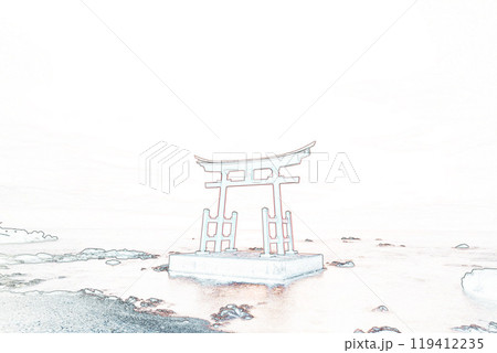 パステル調 ”豊崎金毘羅神社 北海道” イラストイメージ