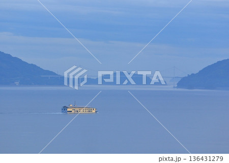 夕暮れ時の瀬戸内海をゆっくり進む客船