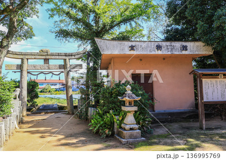 山口県下関市の杜屋神社境内の宝物館と鳥居