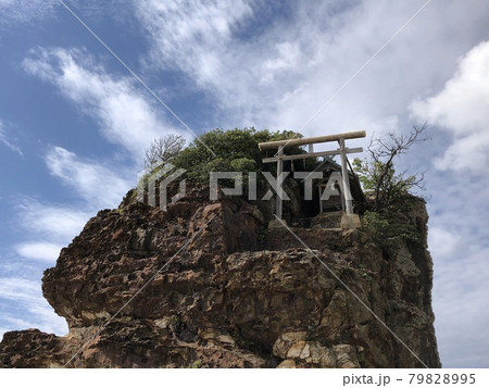 《稲佐の浜 弁天島の鳥居と豊玉毘古命(とよたまひこのみこと)を祀る(まつる)祠(ほこら)》(島根県)