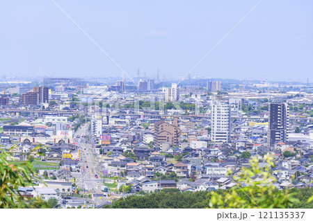 野見山展望台から見た豊田市街地と矢作川の風景