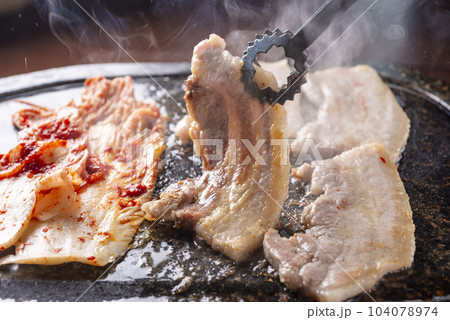 サムギョプサル 韓国焼肉 Barbecue of Korean pork(samgyeopsal)