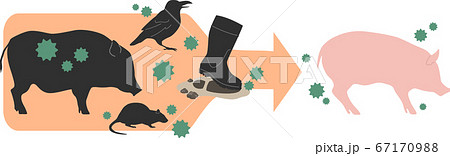 【豚】感染症の感染経路イメージ画像 - A 家畜 養豚 感染症 イメージ