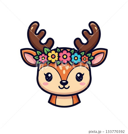 Cute Deer with Flower Crown on Antlers in Vibrant Kawaii Style