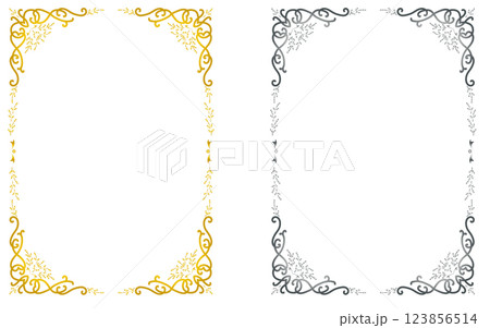 現代的なイメージを混ぜたアールヌーボー風の装飾枠。(金色と銀色のセット)