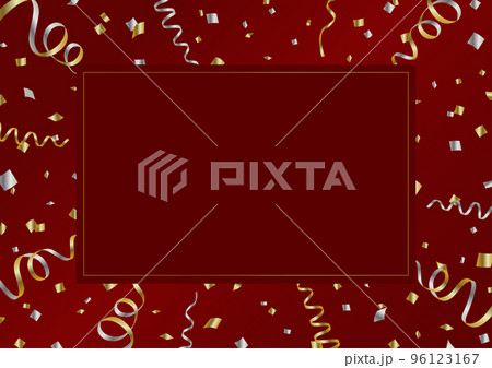 リボンと紙吹雪が舞うクリスマスのバナーフレーム A判 赤金銀