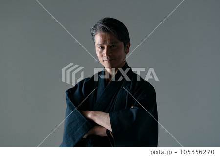 男着物を自分で着付ける男性 自装 着物姿の男性