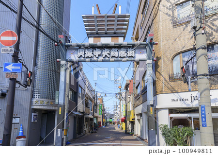 南海電車 貝塚駅 西出口駅前 貝塚中央商店街のアーケードアーチが見える風景 大阪府貝塚市海塚