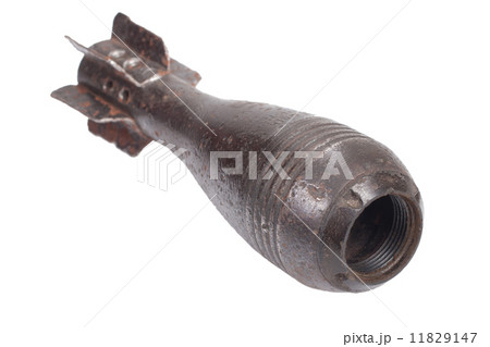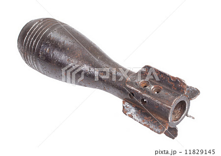 Rusty mortar shell WW2 isolated on white