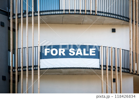 For sale sign outside a apartment building