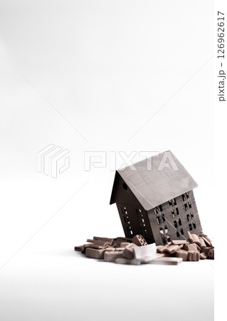 The Yellow house and domino for Business concept 3d Rendering.