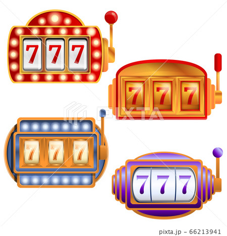 Slot machine icons set, cartoon style