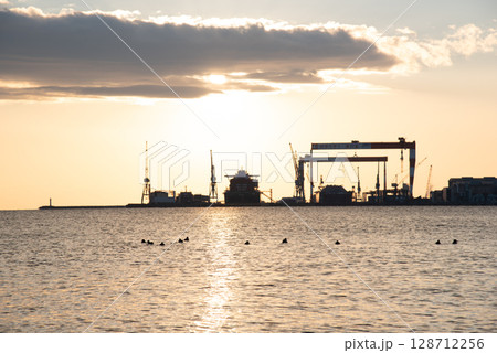 三国サンセットビーチの夕暮れ(福井県 坂井市 三国町 シルエット)