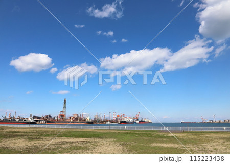 茨城 鹿嶋 鹿島臨海工業地帯 鹿島製鉄所岸壁に停泊中の貨物船