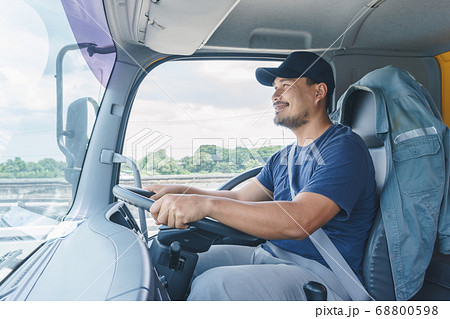 Truck driver is driving a transport vehicle.