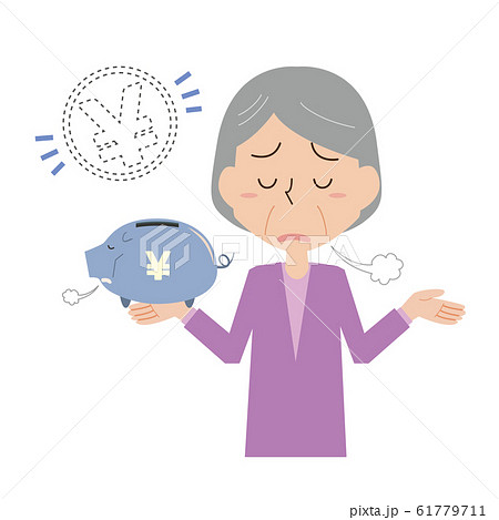 飛んで行くお金 悲しむ高齢温女性 イラスト