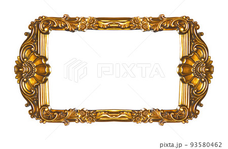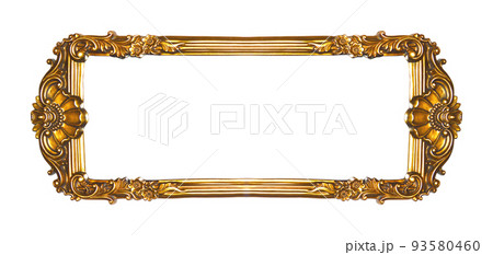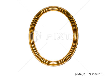 Oval empty isolated transparent wooden and gold gilded ornamental frame