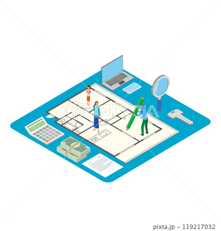 Real estate search. Vector illustration The mortgage loprovided individuals with means to purchase residential property The real estate search concept helped buyers in finding their perfect home