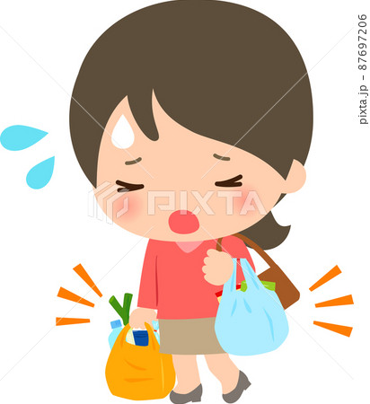 買い物帰りの荷物が多くて大変そうな女性