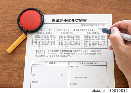 専属専任媒介契約書。 売主と買主との売買仲介業務を依頼
