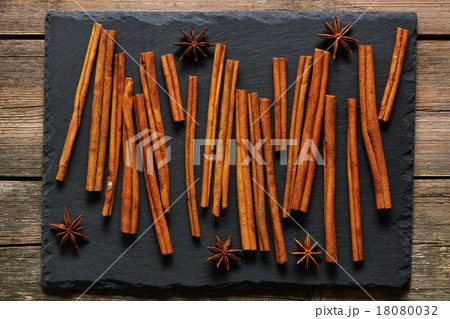 Cinnamon sticks on slate