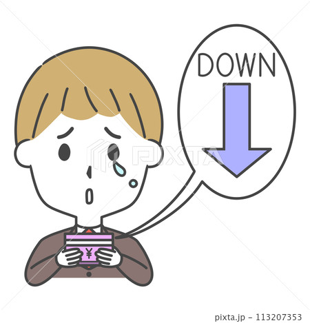給料ダウン(賃下げ)に涙する人物のシンプルな解説イラスト