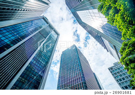 高層ビルを下から見上げた風景
