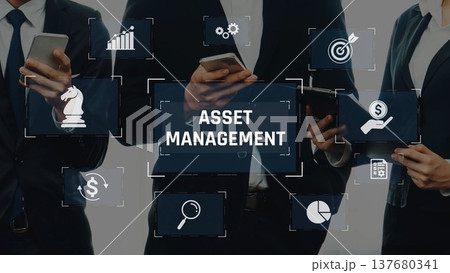 Professionals Engaged in Asset Management with Digital Devices and Graphical Interfaces Representing Financial Growth and Success in Modern Business Environment. Raster