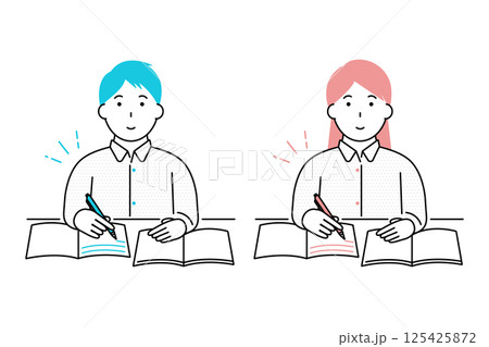 鉛筆とテキストを使って勉強するイメージのアイコンセット